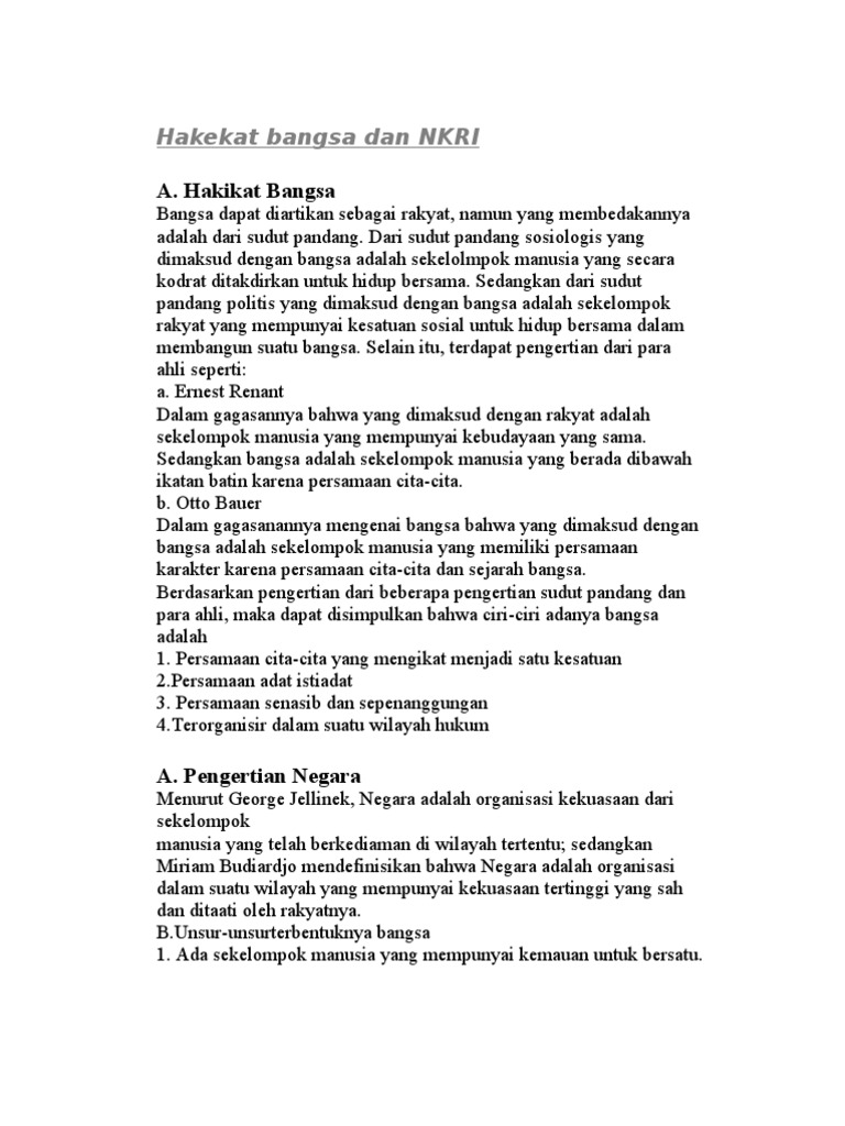 Makalah Wawasan Nusantara Dalam Konteks Negara Kesatuan Republik Indonesia Doc Pdf Download Lengkap from doc.lalacomputer.com Hakikat negara kesatuan republik indonesia adalah negara kebangsaan modern, pembentukannya didasarkan pada semangat kebangsaan dan nasionalisme. Bab i hakikat pengenalan diri. Bangsa selalu dikaitkan dengan rakyat, namun suatu rakyat tidak. Pembentukan negara kebangsaan modern didasarkan pada semangat kebangsan atau disebut nasionalisme. Agus ngadino, sh, mh tot scbd angkatan vii lembaga. Ipa bab 2 bag 1. 884 x 464 jpeg 116kb. Tema pada saat ini yg saya mau uraikan adalah sangat2 rahasia, beruntunglah, berbahagialah & bersyukurlah kpd allah swt, karena penjelasannya.